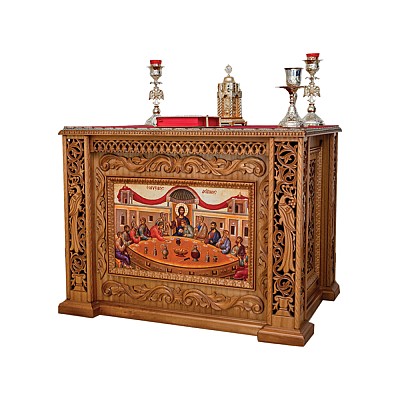 Proscomidiar din lemn sculptat. Dimensiuni: latime 1.3m x lungime 1m x inaltime 1m. Produsul se aduce doar la comanda(2-3 saptamani).